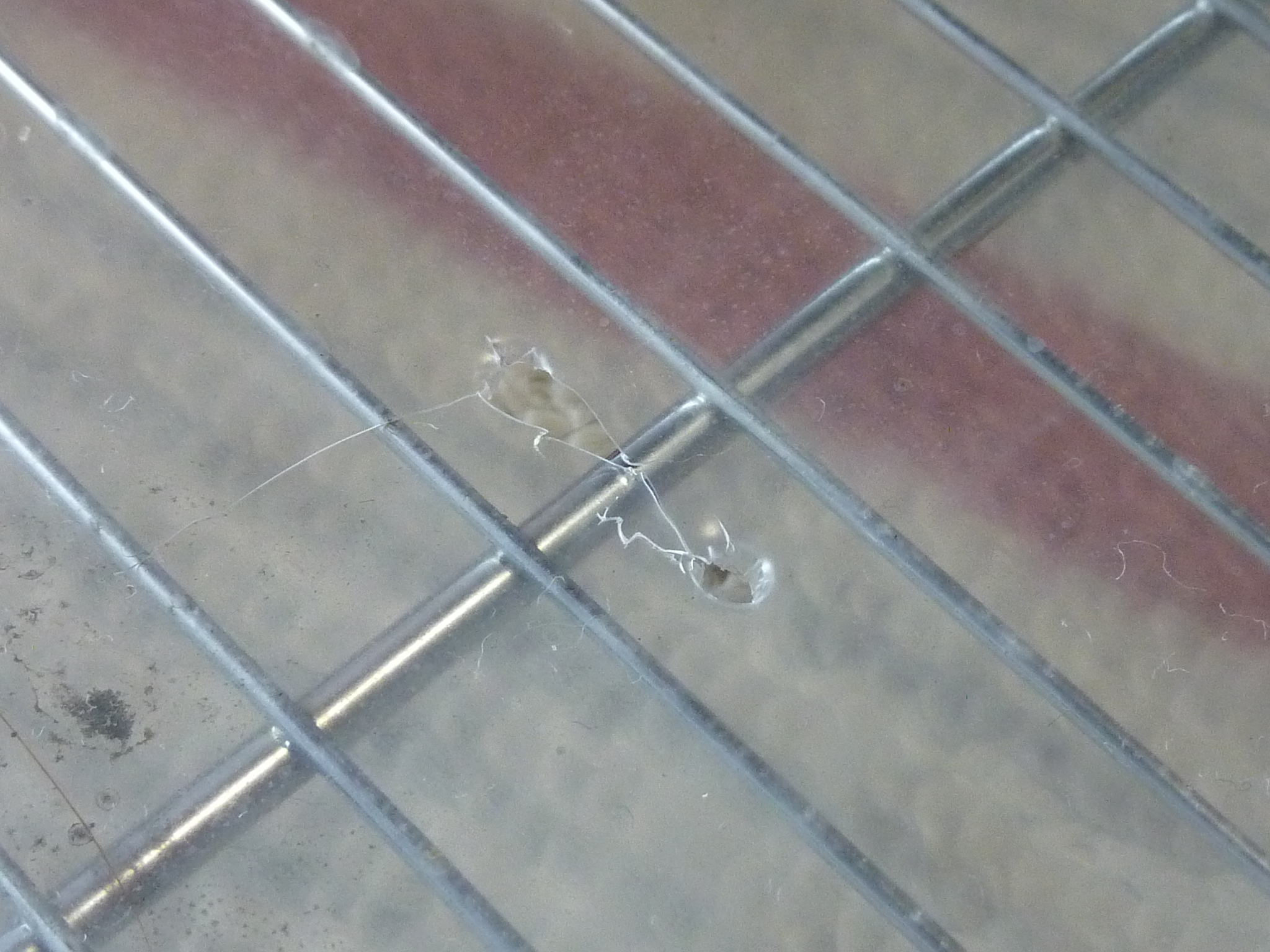 どうやらタイヤにこすれてワイヤーロックがシートをぶち破って飛んでいった様子。なるほど。そこがこすれてたのか。