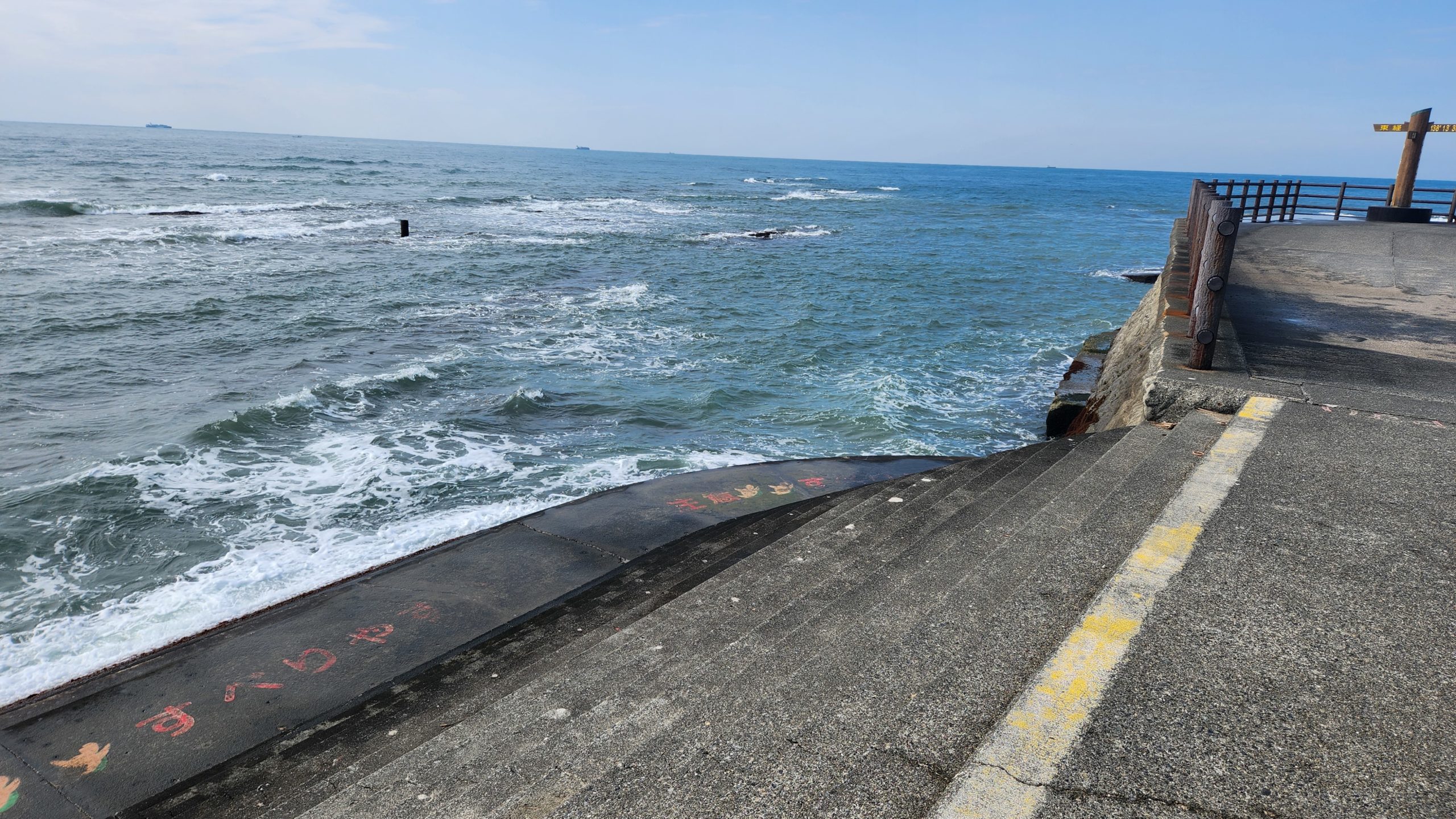 #波際まで降りられます。今の波だと引きずり込まれそうですが(;゚ロ゚)