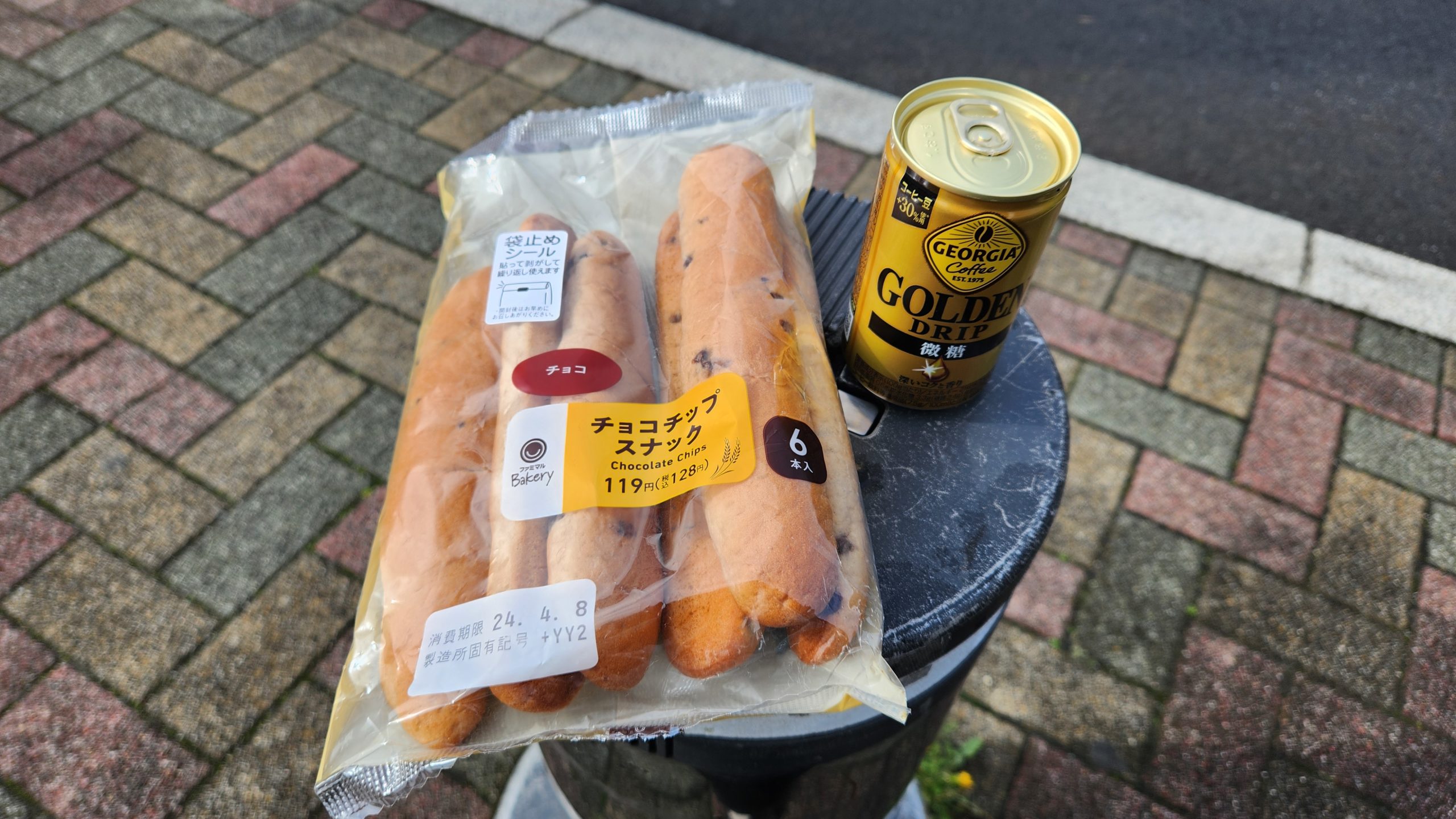 今回の朝食は「チョコスティックパン」。128円です。プラス缶コーヒー110円。相変わらずの朝食ですが必要十分です。ちょっと体が冷えていたのでホットコーヒーを大抵購入するので今回もその流れです。来月くらいからはアイスコーヒーになるのかな?