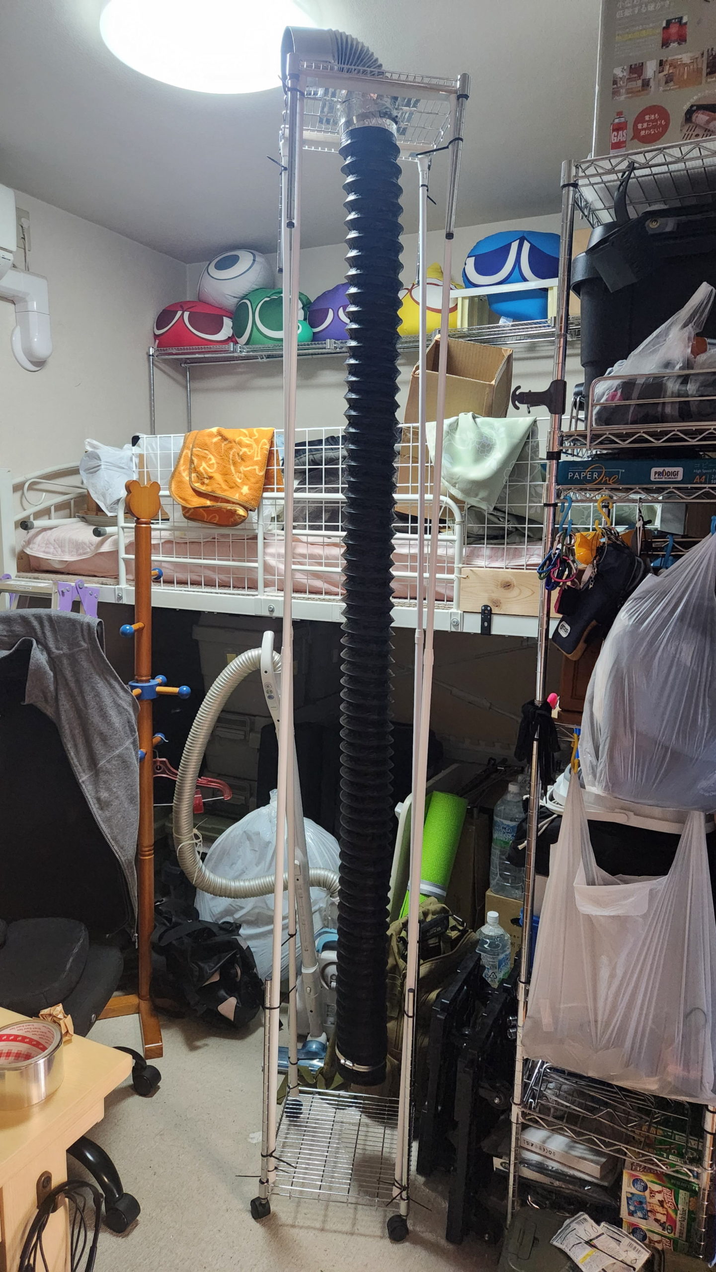 先日、家にあるダイソーワイヤーラックを調整して柱を用意して突っ張り棒と入れ替えました。