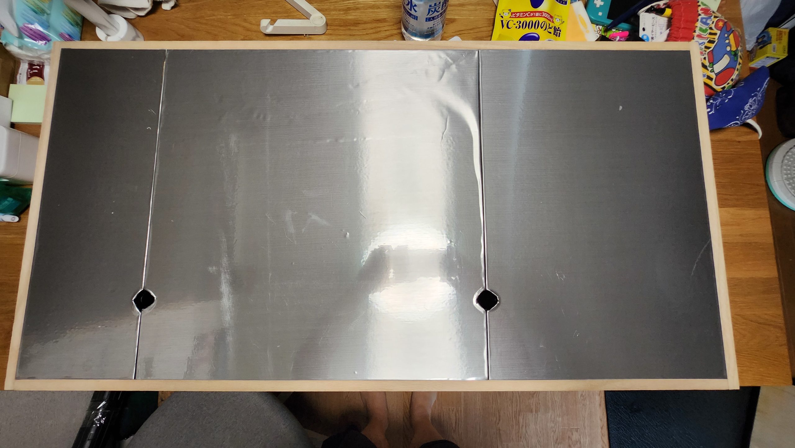 最後に、アルミシートを板に貼り付けて作業は完了です。(さらりと書いてますが、大きいので作業に手間取りました・・・)