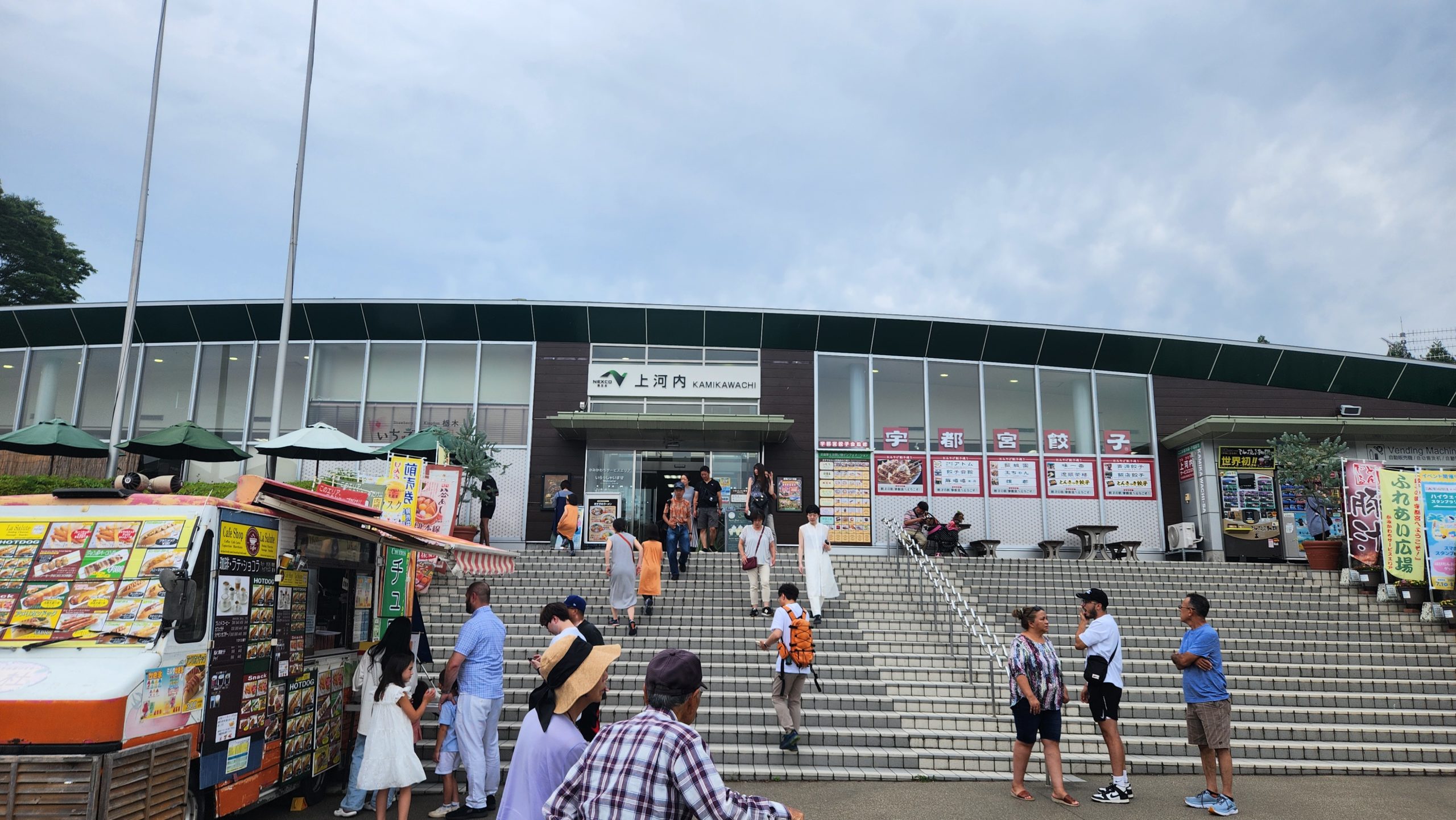 ここからはちょっと粘って一気に東北自動車道まで進み、宇都宮を超えた上河内SAまで進み、お昼休憩です。気温は31度。12時過ぎに到着です。