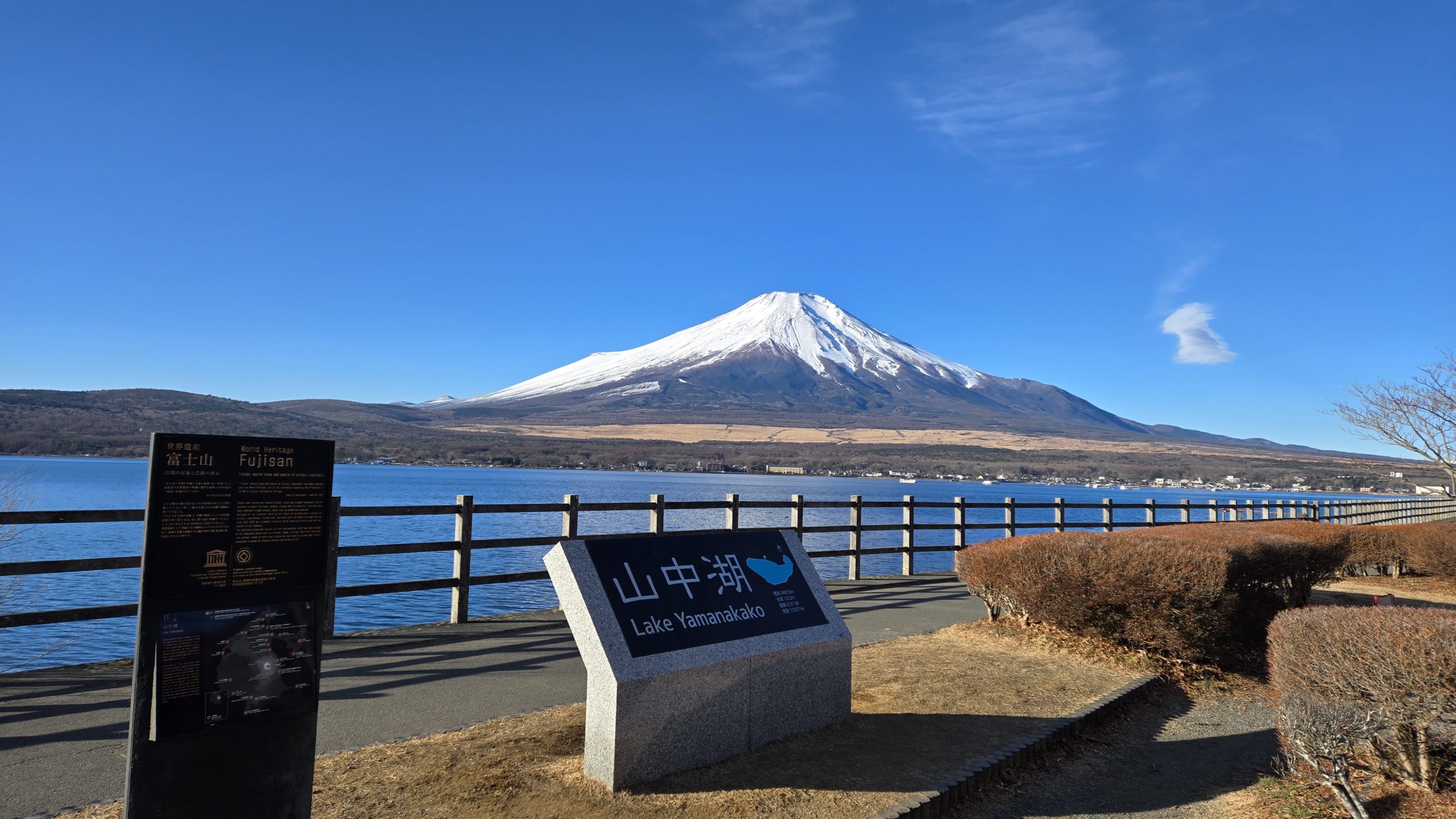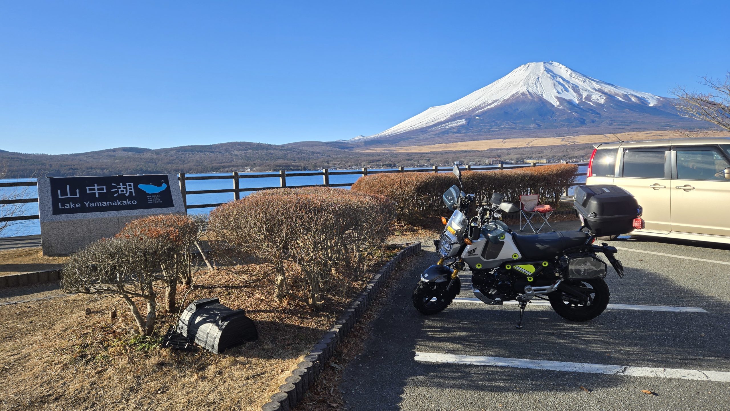 で、出発するとすぐに冷えちゃうんですけどね。そこから30分くらいでしょうか。山中湖に到着。という流れです。