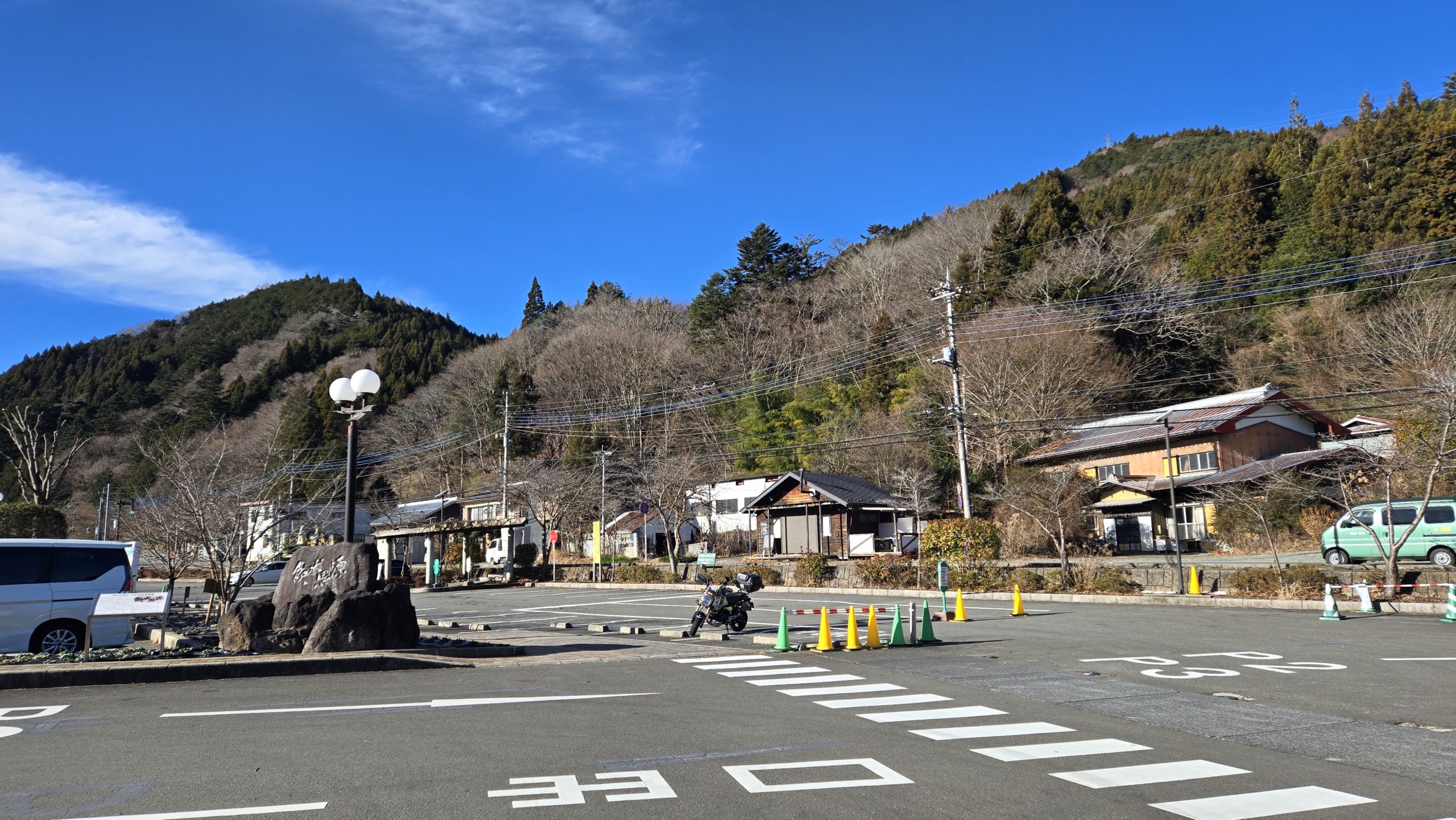 実際問題、国道20号・139号ですれ違ったバイクは数台。走行距離は100km超えてますけど数台です。国道413号に入ってからでも10台もすれ違いません。で、到着です。当然空いてることになります。ちなみに夏だと山中湖から道の駅までで数十台、下手すれば百台くらいはすれ違います。