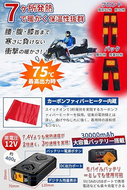 電熱パンツ 独立温度制御 3L-4L 11980円の2500円引きで9480円