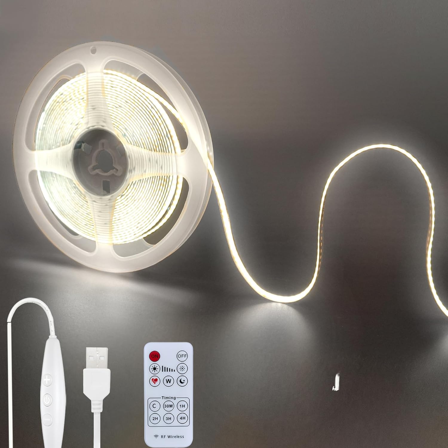 クリアヒル(Clearhill)5V COB LEDストリップライト リモート調光スイッチ付き 昼白色 6500K LED320個/M 幅8mm 非防水IP20 1.5M USBスイッチケーブル 5m 2個セット 4920円(なんと、2個セット)