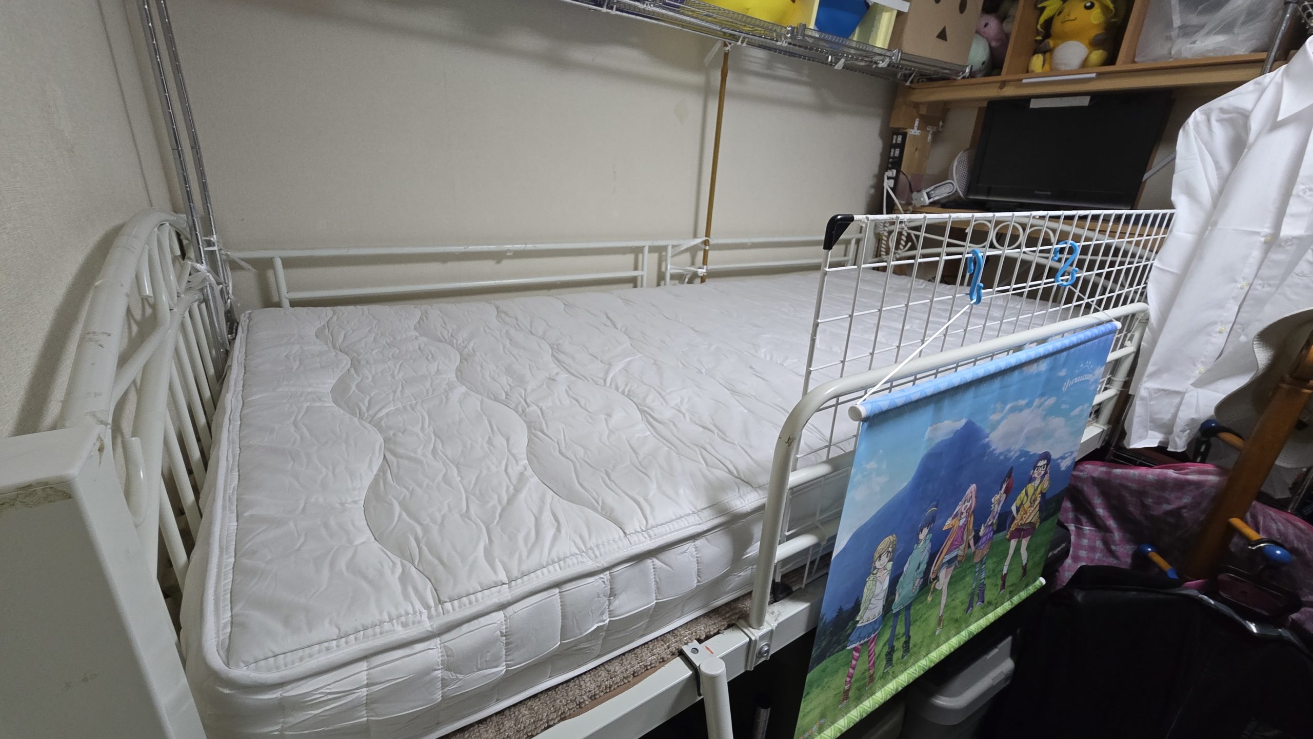 が。昨年11月にゆきんちょが泊まりに来てマットレス中央付近のコイルが壊れており陥没していることが判明。みきんちょに聞くと「前からだよ。避けて寝れば大丈夫」とのこと。いやいや、大丈夫じゃ無いでしょ。実際ゆきんちょは「痛かった」と言ってますし?