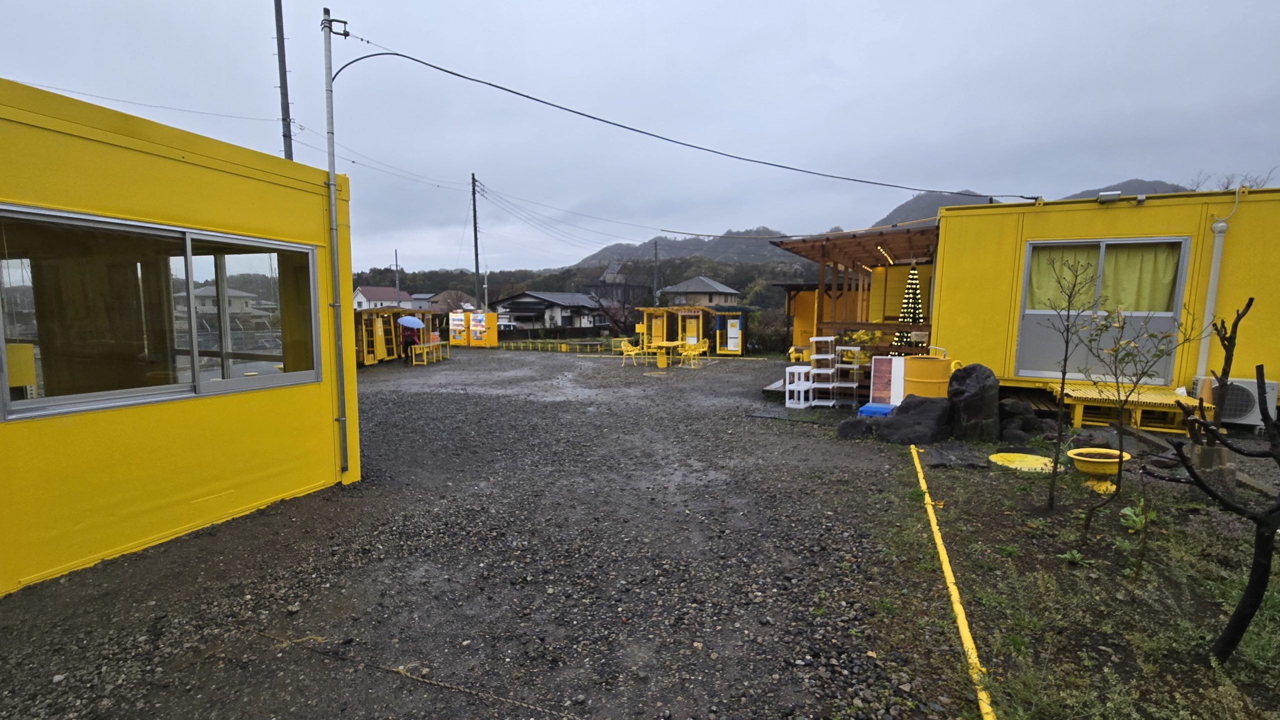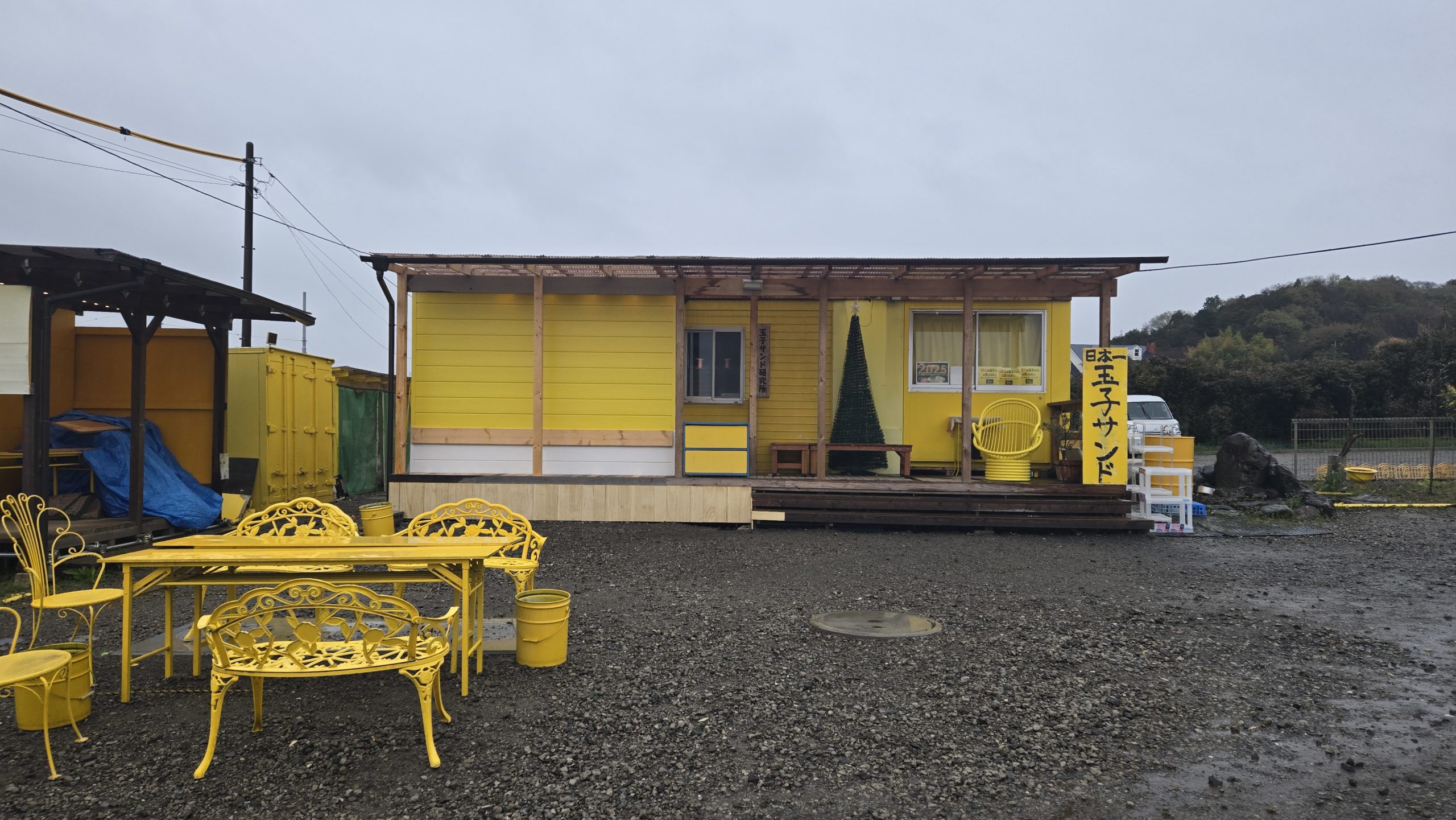 で、すんなり国道412号には到着したわけです。で、ネットには「黄色い看板があるので脇道に入る」とのこと。探したけど・・・ない。なにもない。2往復くらいしたけど何も無い。仕方ないのでナビに住所を入れてみたら「あと300mです」とか。近すぎワロタ。指示に従って路地を見ても看板なんてありません。撤収しちゃったのかなぁ。と、曲がった瞬間に黄色い空間を目視。あれか・・・。6時ちょうどに到着しました。