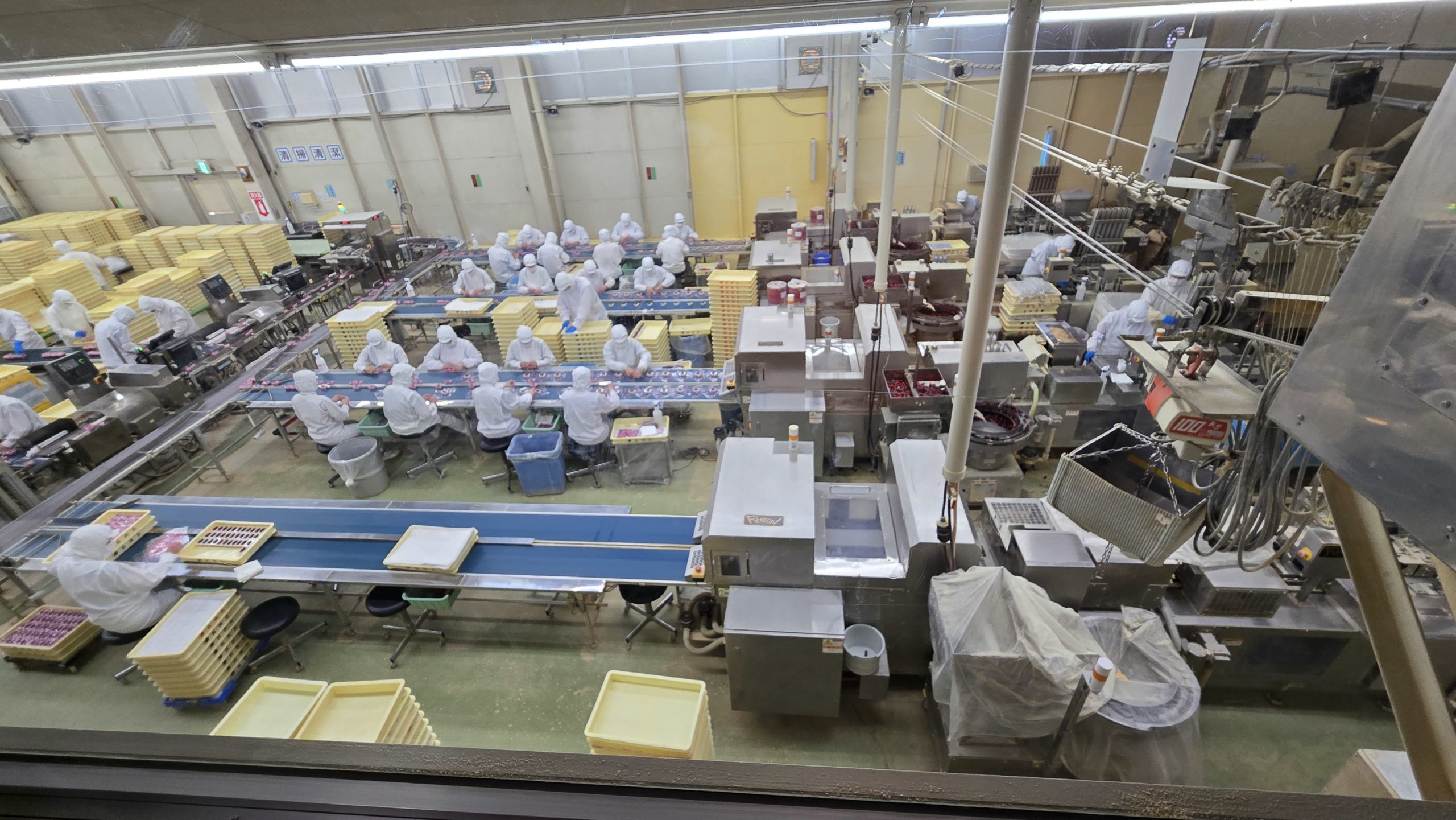 手で梱包してやがる・・・1日数万個の作業とのこと。私は同じ作業というのが性に合わないので、こういった工場の一定作業勤務はムリなんですわ・・・みなさん、がんばってください。