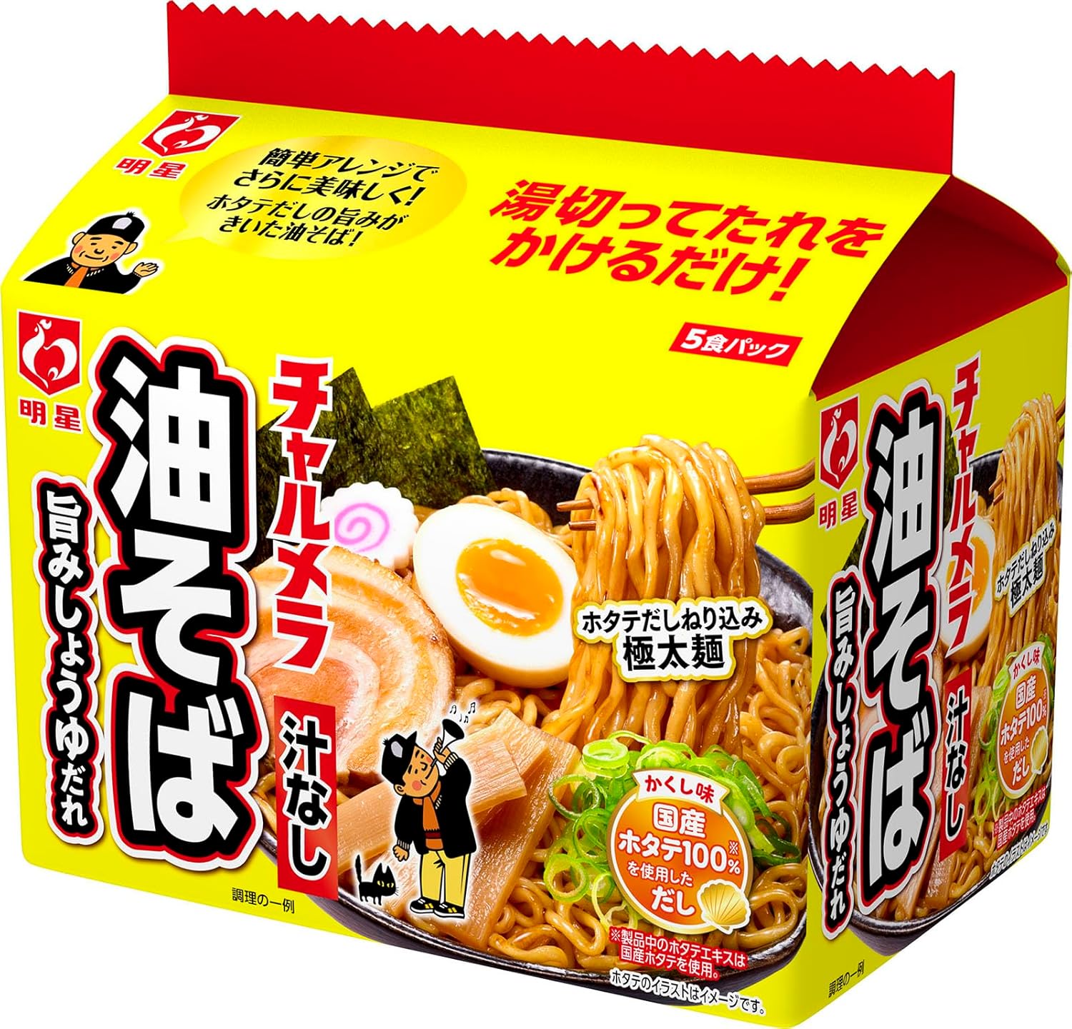 昨日、お買い物に行ったときに安売りしていた「チャルメラ 油そば」。袋麺5食入りです。