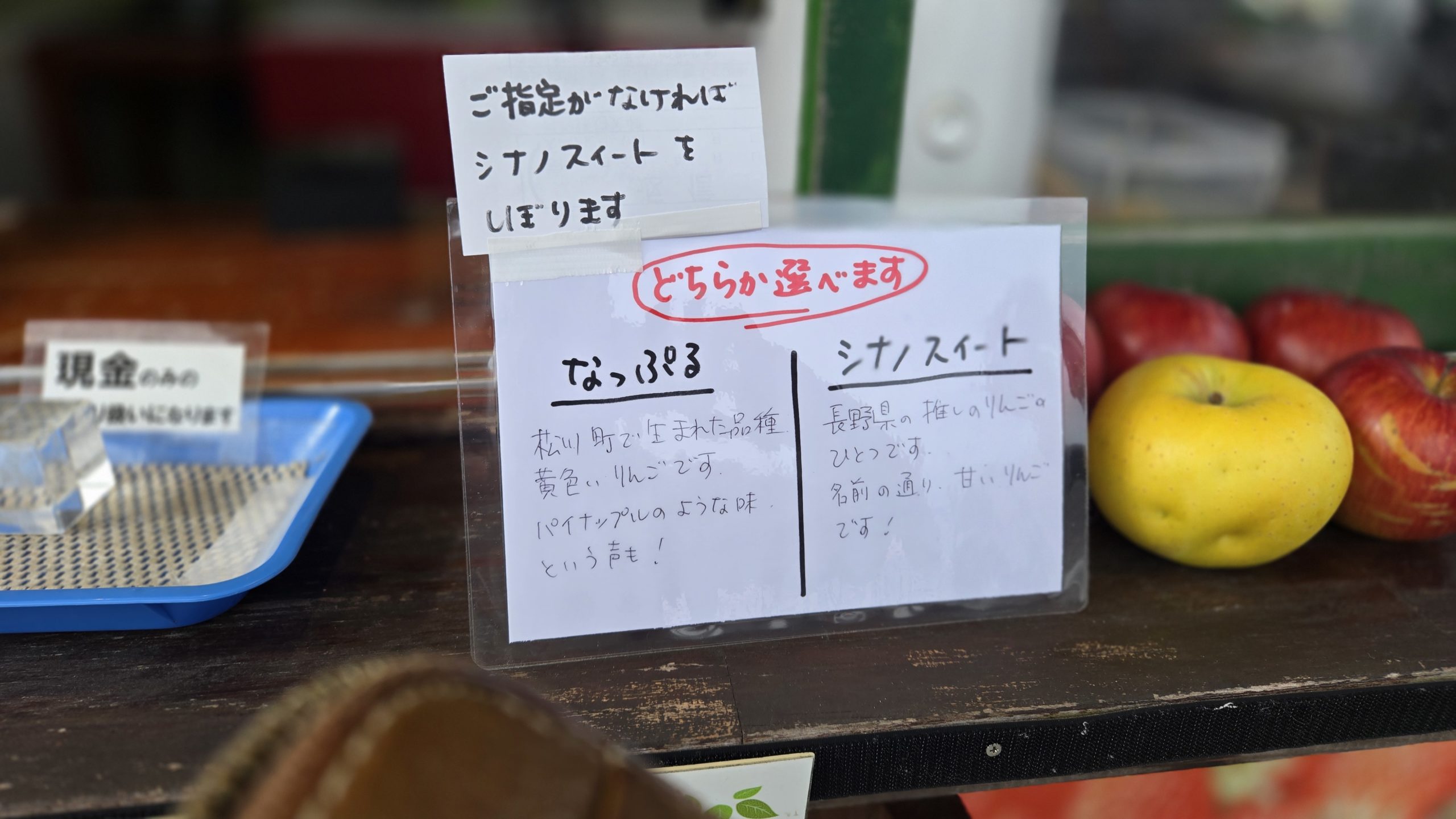 右に見える外売店にリンゴの生搾りジュースがありまして。リンゴ好きな私はもちろん購入です。