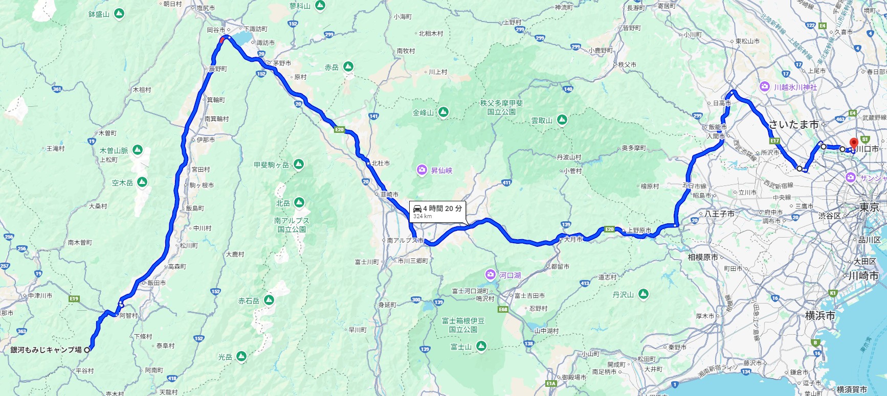 オーソドックスなルートとしては、中央自動車道から向かう。というモノのようです。キャンプ場公式サイトにもそのような感じで記載がされています。(一応名古屋方面からの一般道の案内もありますが、あまりオススメではないようです。「名古屋から一般道 →国道153→足助→稲武→根羽村→平谷村→もみじ平(約2.5時間)」と書かれています(公式サイトから抜粋)